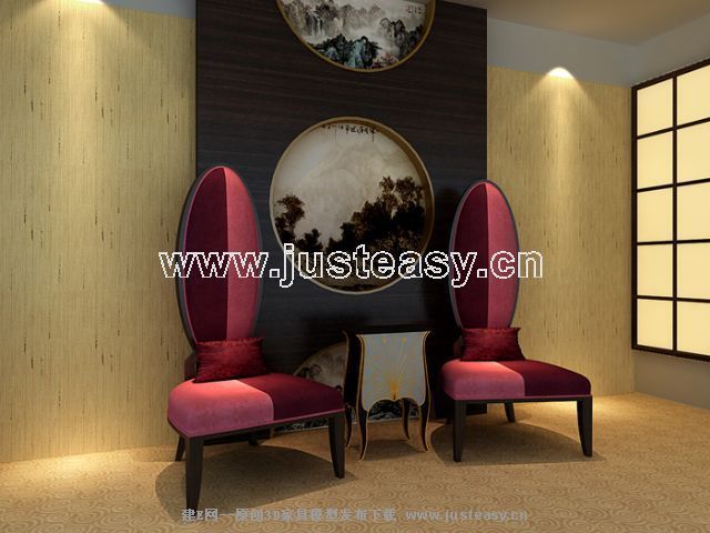 Description:Tip back a soft chair, fabric sofa, western style furniture, red chairs, model download, 3D models