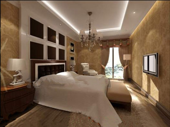 Description:Pale yellow comfortable bedroom