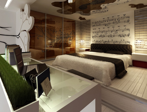Description:Bedroom, interior space, individual bedrooms, music, piano, 3D model