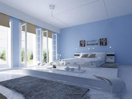 Comfortable minimalist light blue bedroom