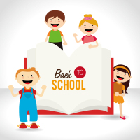 Description:Cartoon classroom building back to school poster vector material