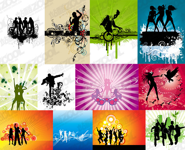 Description:12 trend of music-related people silhouettes vector material