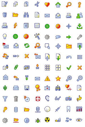 Cartoon-style icons web design commonly used material