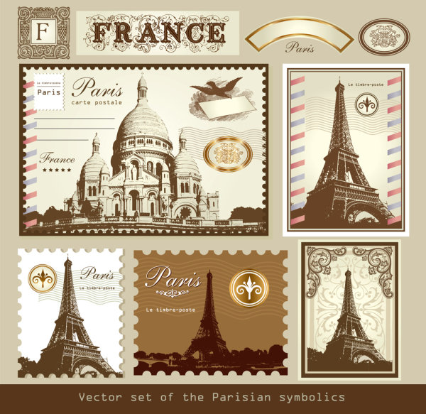 Description:London and Paris, a symbol of stamps 02 - vector material