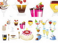 Drinks and cakes Vector material