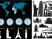 Time zones world-renowned architecture and vector material